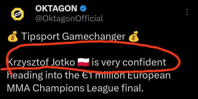 Według organizacji OKTAGON MMA, Krzysztof Jotko jest „very confident” przed swoją kolejną walką. A Wy wierzycie w przypadki? 🙂