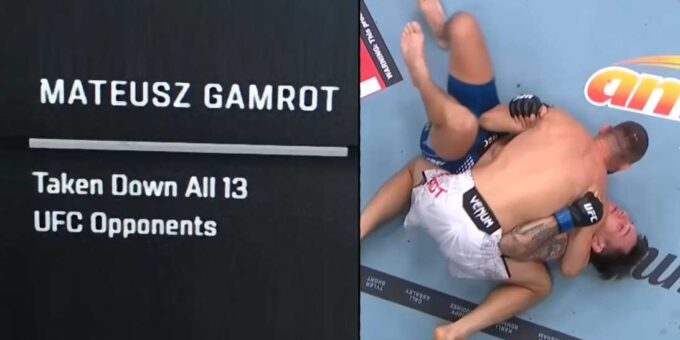 Podczas wczorajszej walki Mateusza Gamrota z Estebanem Ribovicsem pojawiła się interesująca statystyka dotycząca Polaka. Okazało się, że Mateusz obalił każdego ze swoich 13 przeciwników w UFC.