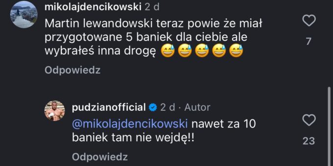 Kto by pomyślał, że kiedyś będzie taki konflikt na linii Pudzian-KSW. Zrzut ekranu zrobiony przez Adriana Szymańskiego z Twittera.